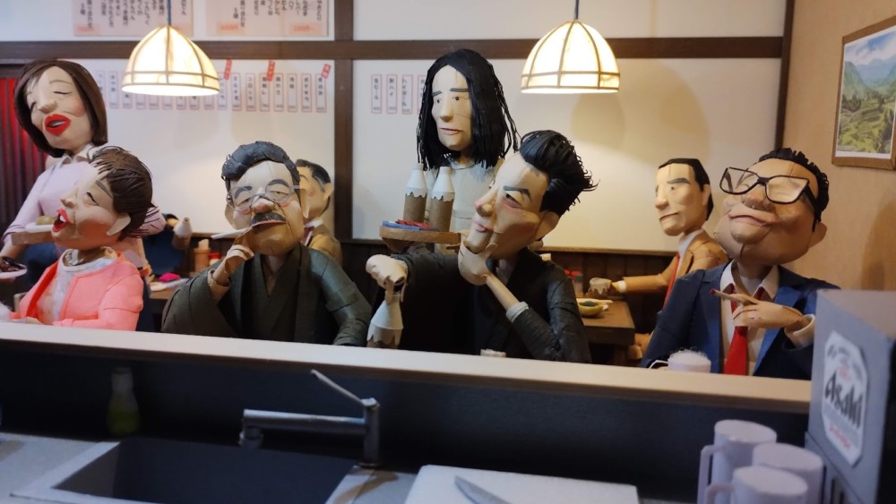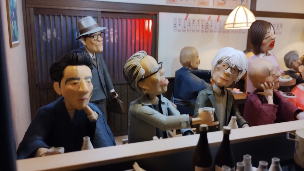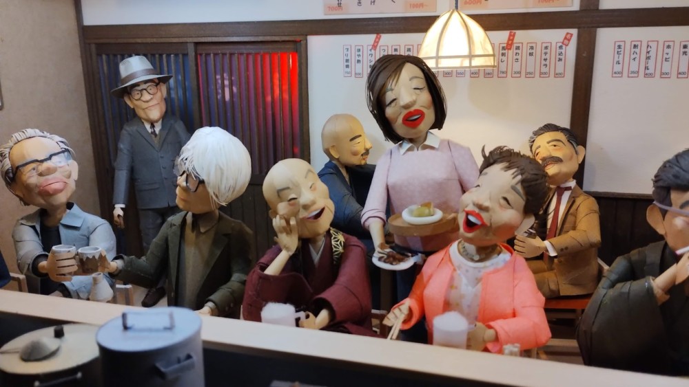 奥の椅子席は左から 正岡子規、夏目漱石、川端康成、三島由紀夫